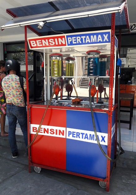 - Pertamini: mobile stations operated by small shops. The price is variable and a bit more expensive than the main station.