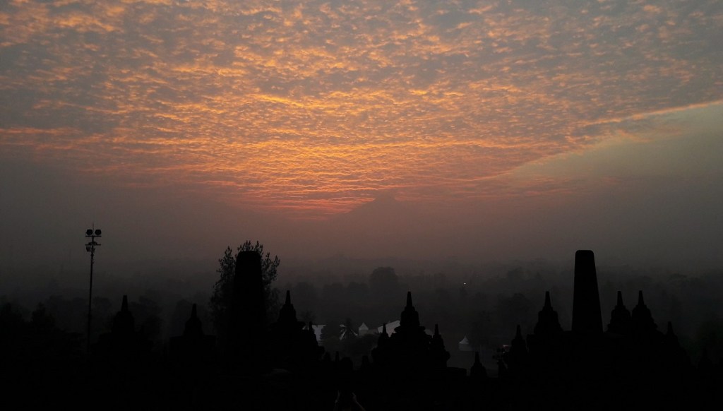 I woke up at 3 am, and it took me a 1hr 15min drive to get there (some Muslim party was happening in the middle of the night and blocked the whole main road). I like to drive at night and early in the morning when the streets are empty, and you can feel the cold of the tropics – freezing, but at least it wakes you up. It was a Sunday, so I shared the site with many other people (I’m sure it’s even worse during the day). The dawn was quite overcast, but the cold stone structures, the morning colours, and the mist rising from the valley made the experience magical; I felt very grateful to finally be there.