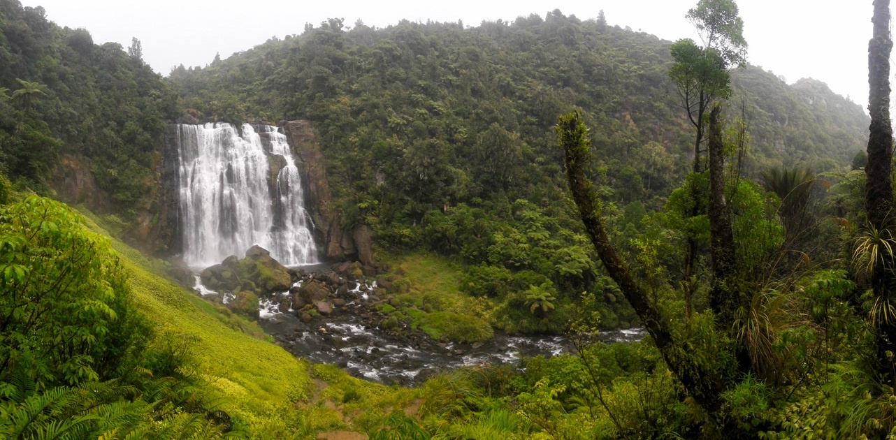 After the cave, I checked out the Marokopa Falls, which looked impressive even in the gloomy weather with the mossy jungle and gorgeous ferns all around.
