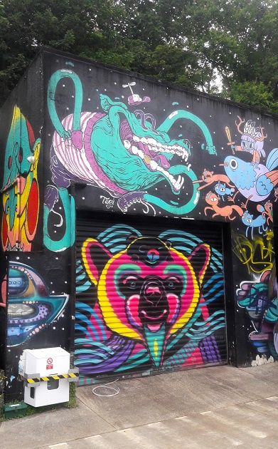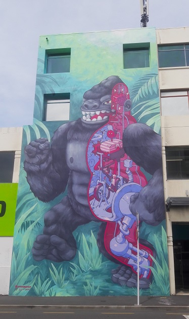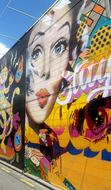 And my intentional last stop was Palmerston North. Yes, I drive a 70 km detour just to see some street art. The town smelled fabulous from the rose beds, and the painted walls (in Berrymans Lane) didn’t disappoint, so it was all worth it.