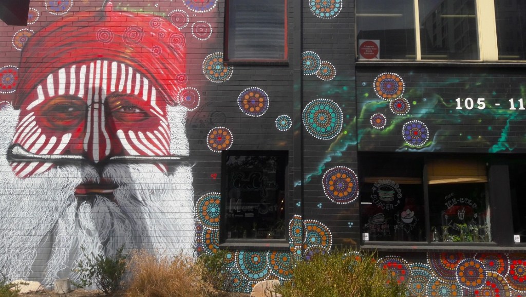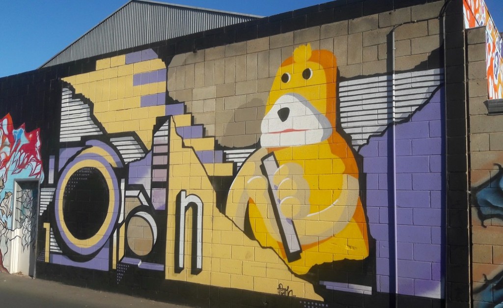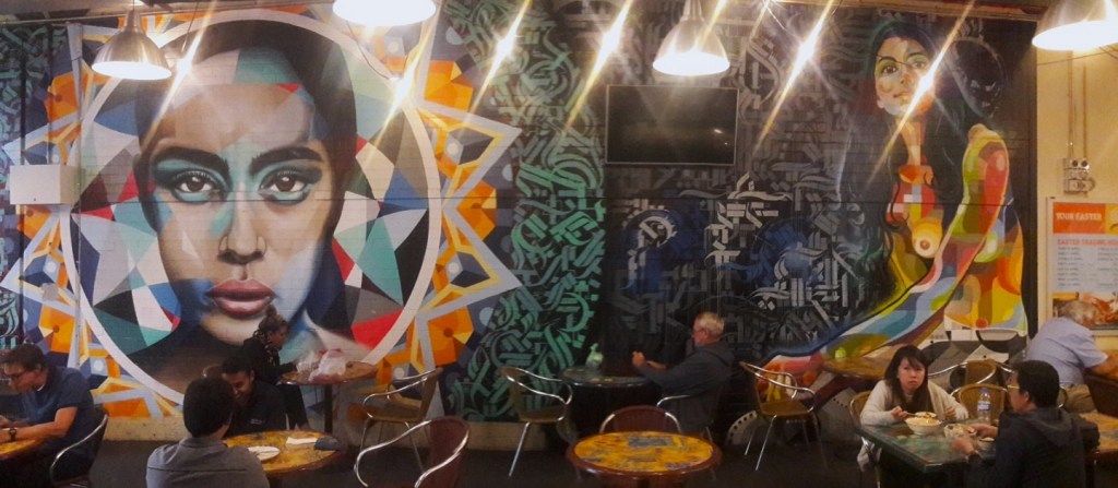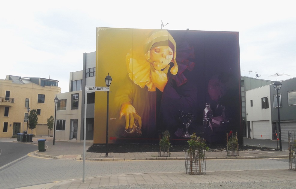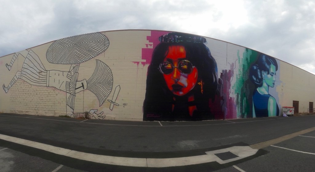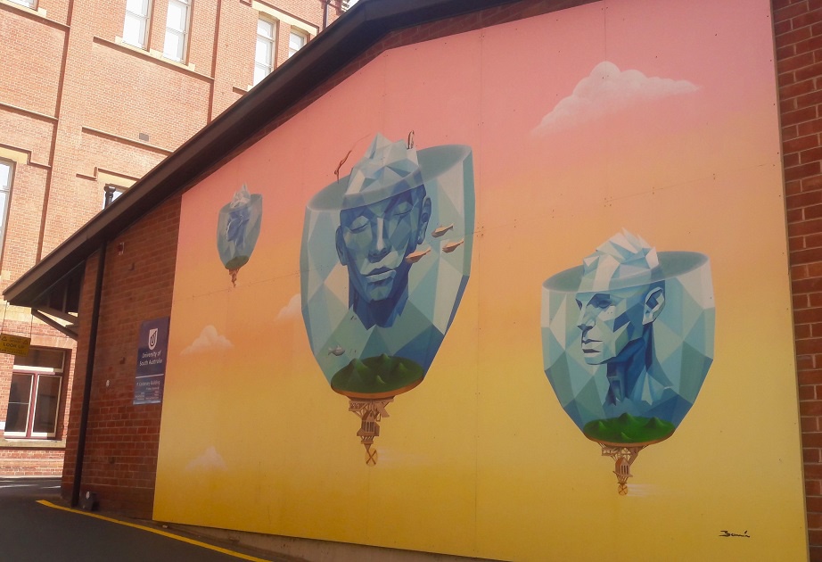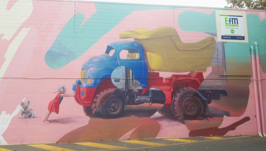 I love that street art in Adelaide integrates into everyday life; it’s part of the streetscape, matches the atmosphere, and is accepted as a highly decorative way of self-expression. I love hunting murals and seeing for the first time the work of artists I’ve been following for a long time. The excitement, then the absorption of the details and unique techniques, is like soul food. And Adelaide got my taste in style and colour, so walking the vivid streets in the sunshine sweetened my anti-Aussie mood.