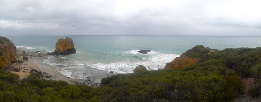 One thing I don’t like about Victoria is the weather. I’m a tropical person, and this unpredictable, rainy weather with the cold breeze is just not for me; I’m not just weather-moody, I also hate freezing. We left the city in glorious sunshine and arrived at our first stop, Bird Rock Lookout, in the rain. From there, the Great Ocean Road felt mostly overrated and overhyped, but at least long. The view is lovely (when not obscured by trees), but after 30 minutes, it becomes boring, and then all you’re left with is the crowds and slow campervans as an experience.