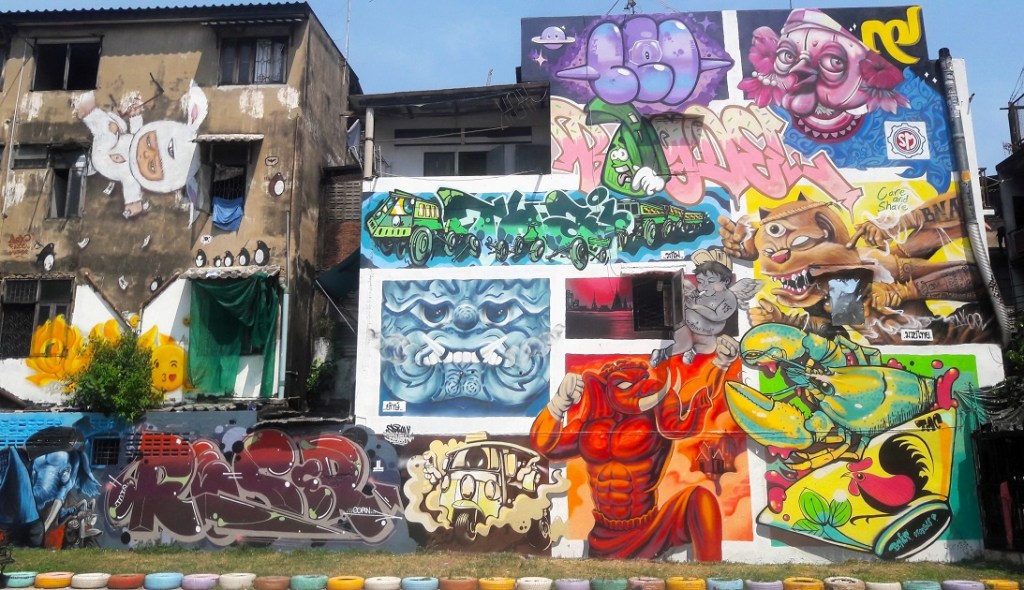 One thing is obvious when you stroll the streets: the Thai capital is loaded with art, and the fusion of the old and modern is mesmerizing; the contrast between rundown buildings and skyscrapers is stunning, and I feel the same about the Buddhist and street art.