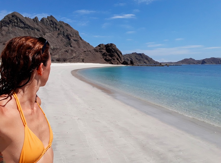Padar is also where you find the Pink Beach (there’s another pink beach on Komodo Island, but this one is the ONE), which is indeed insanely pink. This beautiful colour comes from the foraminifera, and it’s so tempting to bring some sand with you. However (at least by air), you cannot bring it out from Labuan Bajo – there’s always a way where there’s a will.. but leave the sand where it belongs.