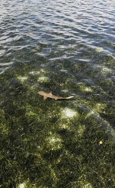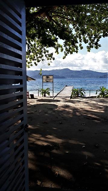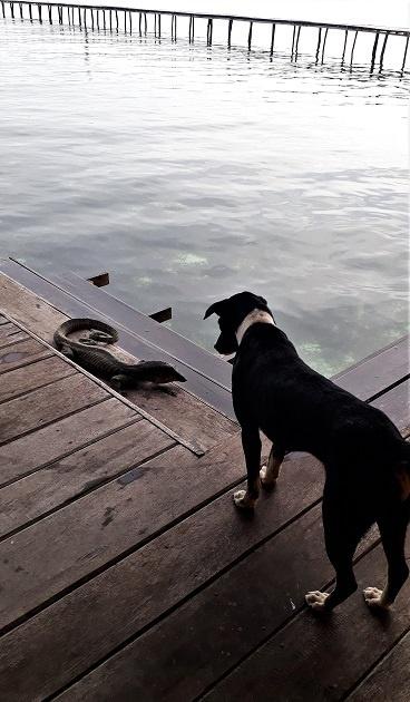 Such a cool way to start the day, waking up to birds singing, walking to the jetty, and watching sharks swimming beneath you. Every morning. We, tourists, love it. For the locals, it’s everyday stuff.. just like a pet monitor lizard on the deck.