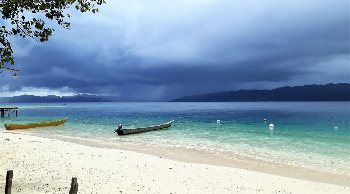 The day when I experienced the real Raja Ampat magic; specifically, how this place turns the most annoying day into the most magnificent. According to the plan, my transfer from Saonek to Kri was timed for 11 am, which I expected to arrive at noon (Indonesian style). Around 1 pm, I started getting frustrated about wasting another day. In addition, beautiful storm clouds began to say hi from the opposite island. The view was stunning, but the idea of being on a boat in this weather stressed the hell out of me.