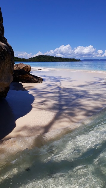 But then I went crazy about our next stop: Rufas. What can I say.. we are different. The first steps into the lagoon made me smile, and after climbing up to the lookout, I was over the moon. I enjoyed the silence, the colours, and the shallow water (with a baby shark). Also, the deep blue water around the island is so crystal clear that you don’t need snorkels to see what’s underwater. I wanted to spend a night or two here, but it’s pretty abandoned now, so unless you’re on honeymoon, you’d feel cast away.