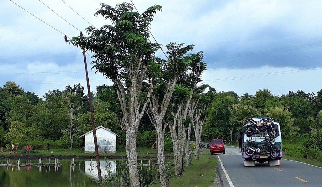The way from Soe to Atambua is nothing special, but at least easy to drive. The roads are good, the view of the mountains and rice paddies is lovely, and the local microlets give you some entertainment, so you don’t get too bored. These busses are undoubtedly the bosses of the roads and show you some real Indonesian things like scooters applied to the back or goats travelling on the top.