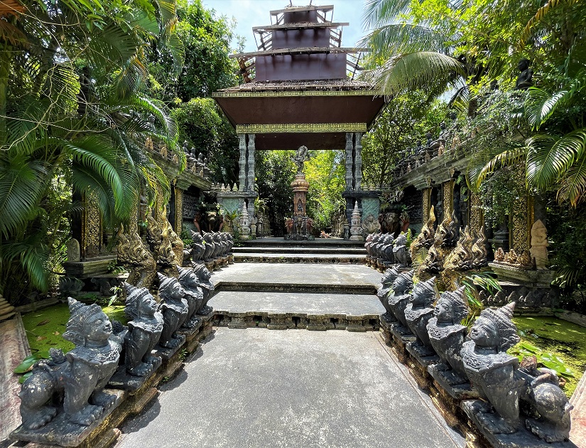 Following the road down, you will reach Namtok Tar Nim & Magic Garden. It’s an artificial, Instagrammable, but pleasant place with a river flowing through the jungle, moss-overgrown buildings, and statues; on a hot day, no better stop to refresh yourself.