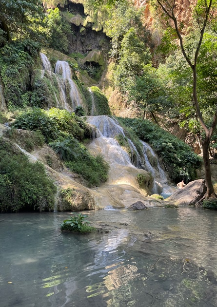 The next day, get up very early, grab some food from the morning stalls, and hit the road to chase waterfalls.
