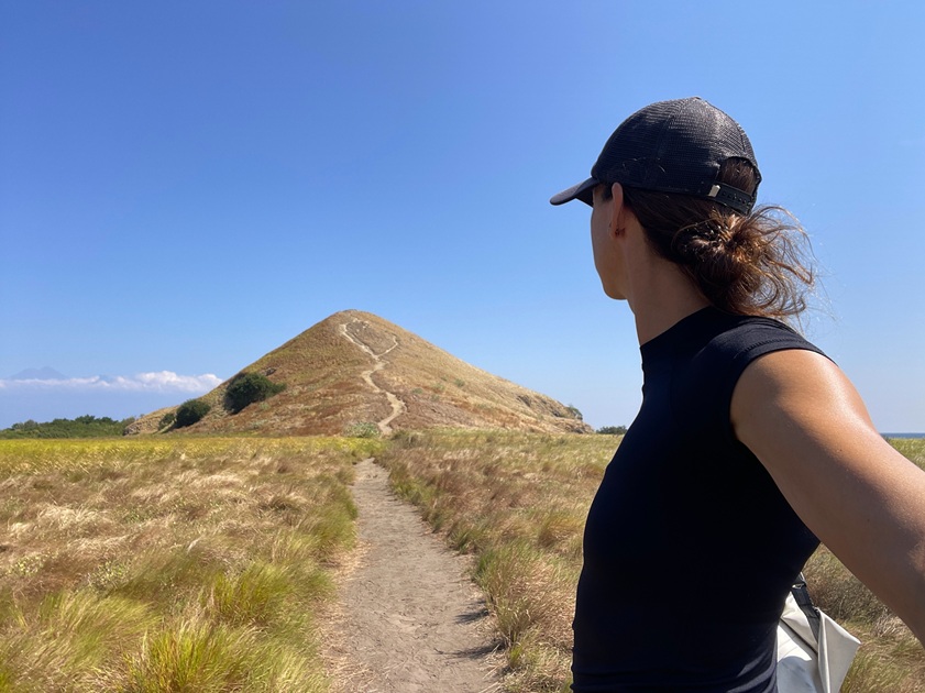 If you love hiking and are thrilled by self-challenges, I highly recommend checking out Pantai Segara. I found myself, in flip-flops and with only a half bottle of lemon water in my hand, on the top of a fucking hill, with a stunning view, at golden hour. How? I spotted it while scrolling on the map, and drove there. Well.. I could have taken the hint about the circumstances while finding the way. First, Google Maps doesn’t show the correct road. Then the two paths narrow into one lane (meaning bikes only), which ends on the side of the cliff, in the bush, only pointing to a rocky walking path downhill. I parked and went part goat.. I had no idea where I was heading, how far I could go, or what I would find. The bush trek took about 30 minutes, was sweaty, the view was gorg (giving me Padar Island vibes.. without the crowds), and even though part of the forest had already been bulldozed (which also made this walk and the view possible), there was definitely a serendipity in the air.